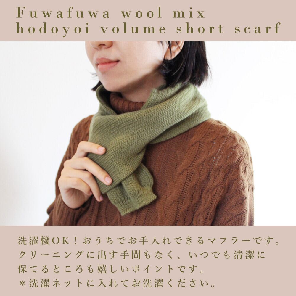【2025秋冬新作】日本製・ふんわりウール混のほどよいボリューム感ショートマフラー【HOME】
