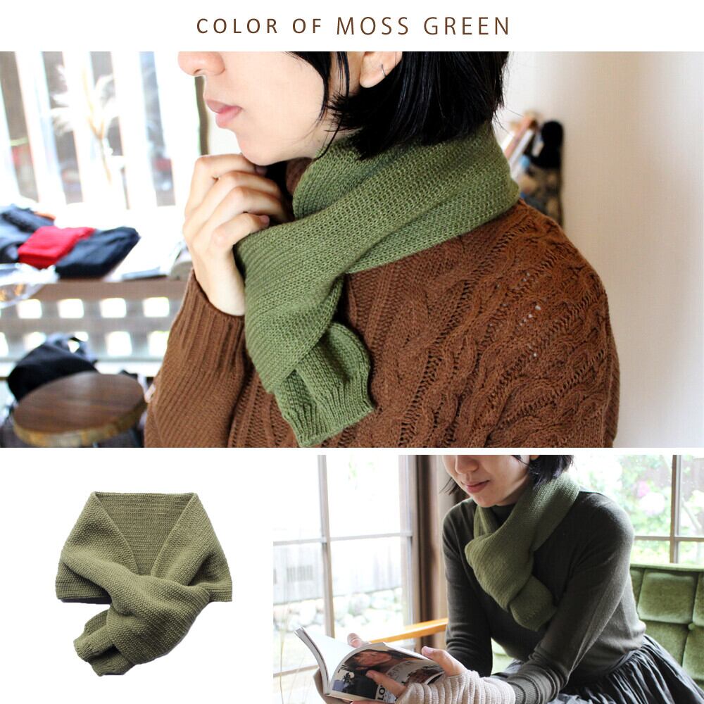 靴下やレッグウォーマーを編む機械を活用し、無縫製で仕上げたショート丈マフラー。ホール部分以外に縫い目がなく、タグも排除した設計で、肌あたりがとてもやさしいのが特徴です。日本製ならではの丁寧な仕上がりです。